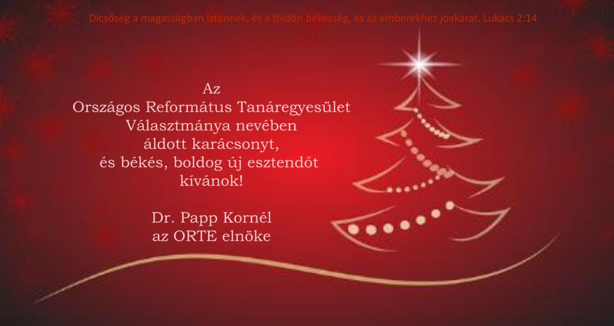 Az Országos Református Tanáregyesület Választmánya nevében áldott karácsonyt és békés, boldog új esztendőt kívánok!